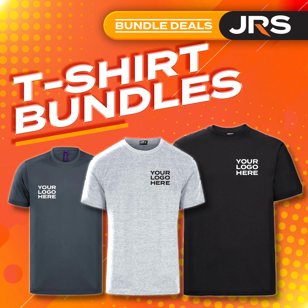 Expect great quality and great deals when you shop at JRS Industrial Supplies for personalised T-shirts or sweatshirts. Delivery is free for embroidered workwear packages or printed workwear bundle deals over £150.