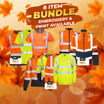 Build your ideal high-visibility workwear set with this 8-item embroidered or printed bundle, offering flexibility, comfort, and safety. Perfect for workers who need Hi-Vis certified apparel with a professional touch.