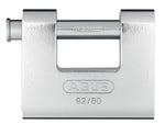 The ABUS 92 Series Monoblock Shutter Padlocks have a solid brass body encased in hardened steel jacket. Its shackle is made from hardened steel alloy, which rotates when attacked. The 5 pin precision tumbler cylinder features anti-pick mushroom pins and rust-free components. A hardened steel pin protects the narrow side of the lock against sawing and the deadlock mechanism requires a key to lock.