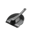 Addis Dustpan and Brush Set. Stylish set with a rubber lip on the dustpan for easy collection of dirt and the brush conveniently clips onto the dustpan so its always ready to use. Colour: Metallic Silver.