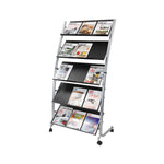 Alba 5 Shelf Single Sided Mobile Literature Display Stand 3xA4 DD5GM. Each shelf has space for 3xA4 documents side by side. Each shelf holds up to 350 sheets. Mobile on 4 castors. Curved design. W820xD510xH1660mm.