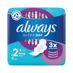 Always Ultra Day Pads size 2 offer you protection against leaks and odours. Always pads absorb in seconds thanks to their InstantDry technology and they prevent leaks and odours thanks to their LeakGuard and OdourLock technologies. The unique ComfortLock wings are designed to fit any kind of underwear. The InstantDry system absorbs liquid in seconds. Dermatologically tested. 11 pads per pack. Pack of 8.