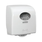 Aquarius Slimroll Rolled Hand Towel Dispenser White. Ideal for use in shared washrooms. Smooth design with no dirt traps. For use with Scott and Kleenex hand towel rolls.