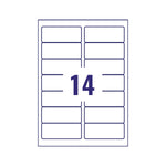 Avery Inkjet Labels. Designed to be used in inkjet printers. Pack contains: 25 sheets each with 14 labels (350 labels in total). Label size: 99x38mm. Colour: Clear.