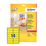 Avery Laser Label. Neon yellow labels, perfect for warning labels, pricing, barcodes, return addresses and more. Pack contains 25 A4 sheets, with 14 neon yellow labels per sheet (350 labels in total). Label size: 99.1x38.1mm. Colour: Yellow.