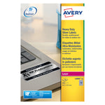 Avery Laser Label Heavy Duty. These hard-wearing labels are designed for outdoor, industrial and warehouse use. Designed for laser printers. Pack contains 960 labels with 20 sheets and 48 each sheet. Label size: 48x20mm. Colour: Silver.