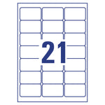 Avery Laser Address Label Recycled. 100% recycled and suitable for use with most laser printers, with jam free technology. Pack contains 100 A4 sheets, with 21 labels per sheet (2100 labels in total). Label size: 63.5x38.1mm. Colour: White.