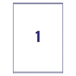 Avery Laser Address Label Recycled. 100% recycled and suitable for use with most laser printers, with jam free technology. Pack contains 100 A4 sheets, with 1 label per sheet (100 labels in total). Label size: 199.6x289.1mm. Colour: White.