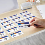 Avery J4785-15 self-adhesive name badge labels made from acetate silk with perforations to separate badges without removing them from their protective backsheet. Pack contains 15 sheets of badges measuring 80x50mm, 10 badges/sheet (150 badges in total).
