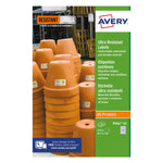 Avery Ultra Resistant Labels are made from a durable and waterproof film material with extra strong adhesive making them suitable for safe and permanent marking even outdoors in wind and rain. Ideal for outdoor storage use, the white label material is BS5609 Part 2 certified for label and adhesive durability for at least 90 days in seawater and is approved by the Globally Harmonized System (GHS), chemical hazard labelling for marking of chemicals for transport by sea/air. Being resistant to chemicals, abrasion, UV, water, tearing and extreme temperature changes from -40C to + 150C, these are the ultimate choice for industrial labelling of containers such as drums, jugs, bottle, cans, flask and dropper bottles and beakers. Each label measures 38 x 21mm and this pack contains 20 sheets, with 65 labels per sheet (1300 labels in total).