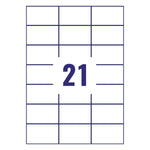 Avery Ultragrip Multipurpose Labels. Designed to be jam free, the labels provide reliable results with sharp prints and excellent adhesion. Contains 100 A4 sheets with 21 labels per sheet (2100 labels in total). Label size: 70 x 42.3mm. Colour: White.
