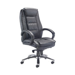With a contemporary design, the Tuscany executive leather chair makes a fantastic addition to your office furniture. The black leather-finish back is ergonomically designed to provide lumbar support and maintain posture, enabling you to sit comfortably for longer. Convenient levers enable you to quickly adjust the height from 530mm to 600mm, with a knee tilt mechanism for adjusting the tilt of the chair with a single lever.
