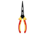 Bahco ERGO Insulated Long Nose Pliers have half-round serrated jaws for gripping flat and round material. The hardened cutting edges are suitable for cutting soft and hard wire. Made from high-performance alloy steel with a phosphate finish and anti-corrosion treated. Fitted with two-component ERGO insulated handles (thermoplastic surface on a tough polypropylene base) to provide superior grip.