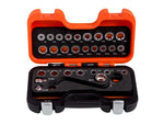 The Bahco S Type Ratchet Ring Wrench & Adaptor Set contains: