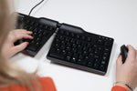 The Goldtouch Elite is an ergonomic split keyboard for your fixed workstation. This ergonomic split keyboard can be slightly adjusted in its inclination angle between 0-30 degrees, and it is guaranteed that the keyboard remains very stable. For the optimal ergonomic usage, we recommend a split keyboard for people who type blindly in the ten-finger system. The keys have a key centre distance of 19mm according to the DIN EN ISO norm and this promises a productive way of typing. In addition, the Goldtouch Elite has status LEDs, integrated multimedia buttons, and keys on the left side for a better distribution of work between your left and right arm. With this ergonomic split keyboard, you can work in a healthy posture and increase your performance at work.