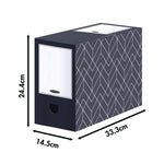 Bankers Box Decor Transfer File has been created with the modern workspace in mind, attractive and practical design to compliment your working area, in a dark midnight blue/grey colour. Strong manual construction will tolerate regular use, keeping contents secure with a hinged tuck-in lid. Labelling areas on 3 sides for convenience, labelling is visible whether stored on the desk, shelf or in any Decor storage boxes. This pack contains 5 grey transfer files. Fully recyclable.