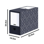 Bankers Box Decor 150mm Transfer File Midnight Blue/Grey (Pack of 5) 4483001. Modern design to compliment the working area. Strong manual construction will tolerate regular use. Labelling is displayed on 3 sides. Internal dimensions: W145 x D333 x H244mm.