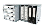 This Bankers Box file store is a versatile unit, which can be used horizontally or vertically and with or without drawers. With time saving fastfold assembly, the file store is compatible with 80mm transfer files, magazine files, ring binders and lever arch files. The unit is supplied with 4 drawers for optional use and stacks 3 high for space saving use. The grey file store measures W400 x D290 x H400mm (external). This pack contains 5 grey file stores.