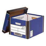 This environmentally friendly Fellowes premium classic storage box is made from 100% recycled board and is ideal for storing records and archiving documents. Featuring unique Presto Instant Assembly, simply push the corners together and the box is ready for use.This premium box features double ends, sides and base, for maximum stacking strength up to 6 high. These corrugated cardboard storage boxes accommodate A4 and foolscap documents, folders, ring binders and Premium transfer files and are the perfect height for racking systems. Measures W330 x D381 x H254mm. This pack contains 5 boxes.