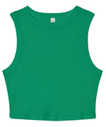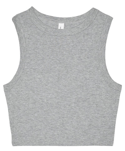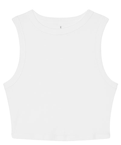 Flex in the women’s micro rib muscle crop tank, equipped with deep armholes for elevated appeal and movement, along with a fitted 1x1 micro rib fabrication that takes comfort from good to great. This cropped high-neck style, inspired by ‘90s cut-offs, takes the new age seriously with the finest fabrication and added feminine silhouette.