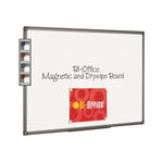 Bi-Office Magnetic Drywipe Board. High quality magnetic board with a low maintenance smooth writing surface and stylish aluminium trim. Supplied complete with pen tray and 5 different coloured corner caps to co-ordinate with your office decor. 1200x900mm.