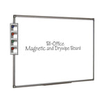 Bi-Office Magnetic Drywipe Board. High quality magnetic board with a smooth writing surface and stylish aluminium finish trim. Supplied complete with pen tray and 5 different coloured corner caps to co-ordinate with your office decor. 600x450mm.