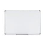 This Bi-Office Aluminium Finish Drywipe Board is ideal for use in any workplace. The aluminium frame features a choice of plastic corner caps in various colours to match any decor, and there is also a clip-on pen tray so you will always have a marker pen handy. This whiteboard measures 900x600mm.
