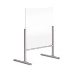 Transparent counter and desk panels suitable for maintaining social distance and physical separation while retaining visibility. These tempered glass, countertop and desk panels are ideal for reception areas in hospitals, clinics, store counters, public services and industrial warehouses for Covid-19 preventative measures. The sturdy structure features an aluminium frame and measures W650mm x H850mm x D425mm.