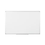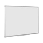 Ideal for meetings and brainstorming sessions, this Bi-Office Melamine Drywipe Board is easy to clean off for a blank surface. The product is C2C certified, demonstrating the company's commitment to material health, product circularity, water stewardship, renewable energy & climate, and social fairness. The top quality dry wipe surface is made of chipboard that comes from 80% post-consumer and post-industrial material, while the sturdy aluminium frame is 100% recycled. It comes complete with clip-on pen tray and wall fixing kit for easy installation. This whiteboard measures 1800 x 1200mm.
