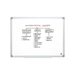 Bi-Office Earth-It aluminium frame drywipe whiteboard. Manufactured from 75 percent post consumer waste and 98 percent recyclable. Low maintenance scratch resistant surface. Includes pen tray and wall fastening kit. Size: 1200 x 900mm.