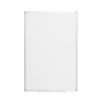 Ideal for meetings and brainstorming sessions, this Bi-Office Melamine Drywipe Board is easy to clean off for a blank surface. The product is C2C certified, demonstrating the company's commitment to material health, product circularity, water stewardship, renewable energy & climate, and social fairness. The top quality dry wipe surface is made of chipboard that comes from 80% post-consumer and post-industrial material, while the sturdy aluminium frame is 100% recycled. It comes complete with clip-on pen tray and wall fixing kit for easy installation. This whiteboard measures 900 x 600mm.
