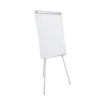 The Easy Flipchart Tripod Easel is a versatile and practical solution for any office or meeting room. This easel features a non-magnetic dry-wipe surface, designed for moderate use and backed by a 5-year warranty. Its lightweight yet sturdy aluminium frame and foldable structure make it easy to transport to any location, providing flexibility for dynamic work environments. The telescopic legs are height adjustable, allowing you to set the easel at the perfect height for any presentation or brainstorming session. Additionally, the adjustable pad clamp fits any standard flipchart pad, making this easel an excellent tool for displaying information, brainstorming ideas, and engaging with your audience.