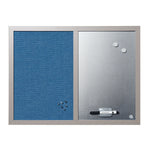 The Bi-Office Essentials Combination Board is a 2-in-1 product and a cheerful, adaptable, and efficient option for your home or office. The blue fabric surface is smooth, pinnable and hook-and-loop-friendly. Make sure everyone is on the same page and acknowledges important information or any tasks that need to be considered. Bring a bit of life to the office with colour, and increase the usability and perception of the board. The silver finish magnetic drywipe surface can be used to write, erase and write again making it perfect to update information, take notes, present ideas, and many more similar actions, and its magnetic capabilities allows the use of magnetic accessories to post notes without damaging them. The set includes an installation kit for an easy wall mount. As a wall-mounted board, its a cost-effective solution that saves room space.