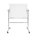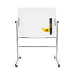 Bi-Office Glass double-sided Mobile Boards offer an elegant presentation tool, featuring an intelligent design and clean lines that adapt to any workspace. The high-quality magnetic glass surface is suitable for intensive use and is perfect for writing. The user can double the writing area that can be used by simply rotating the board. This also allows for information to be previously prepared and hidden until required. The product structure is in chromed steel, making it durable, and also easily moved between rooms due to the 4 locking castors. This is an ideal product for schools, training areas, after school activity centers, or even offices, meeting rooms, and laboratories.