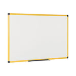 The Ultrabrite magnetic whiteboard features a magnetic drywipe surface that makes it the perfect solution to write and post messages on the shop floor, warehouse, lean management spaces, industrial facilities corridors, laboratories testing facilities, and many more. In fact, most spaces where notes, notices, images, photos, safety instruction, list and other information has to be posted. its a user-friendly and all-purpose solution to promote effective communication, the key to success. The drywipe lacquered steel surface is suited for frequent use with a 10-year lifespan. You can write text, draw, or make diagrams, erase them and do it all over again. Plus, you can use magnets to display information. The highly visible yellow aluminium frame can be mounted both portrait and landscape due to the easy 4-corner mounting system. The product comes with wall fastening kit and a plastic pen tray that can be clipped onto the frame in any position. As a wall-mounted board, its a cost-effective solution that saves room space.
