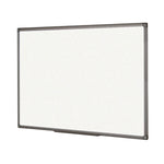 Bi-Office Magnetic Drywipe Board. High quality magnetic board with a low maintenance smooth writing surface and stylish aluminium trim. Supplied complete with pen tray and 5 different coloured corner caps. 1800x1200mm.