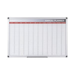 The Bi-Office 365-Day Magnetic Maya Annual Planner is a versatile and durable tool to organize your schedule, tasks, and events for the year ahead. This planner is designed to be mounted on a wall, making it easily accessible and visible in your workspace or home office. The planners robust aluminium frame gives it a sleek and modern appearance. The printed lacquered steel surface allows you to write and erase as needed, making it a reusable planning tool for years to come. The surface is also magnetic, allowing you to attach notes, memos, and other important documents with ease. The planners 365-Day Annual Planner is designed for maximum organization, allowing you to plan ahead and stay on top of deadlines and appointments. The days are clearly marked, and there is space for you to write in your daily tasks and events. With its stylish and modern design, this wall planner will look great in any office space.