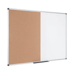 The Bi-Office Maya Non-Magnetic Combination Board is a 2-in-1 product and a sober, adaptable, and efficient option for your home or office. The cork surface is self-healing and resistant, no marks are visible when the push pins are removed. Pin boards are a great way to keep the important information organised and to post reminders. The non-magnetic drywipe surface is suited for moderate use, easy to write on and to clean. You can write text, draw, erase, and do it all over again. Let the creativity flow within the workplace. The set includes a tray to keep accessories at hand and an installation kit for an easy wall mount. Horizontal or vertical wall unit with screws that go through the holes in the plastic corners. This is the simplest, sturdiest, and most robust mounting system around. As a wall-mounted board, its a cost-effective solution that saves room space.