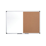 The Bi-Office Maya Non-Magnetic Combination Board is a 2-in-1 product and a sober, adaptable, and efficient option for your home or office. The cork surface is self-healing and resistant, no marks are visible when the push pins are removed. Pin boards are a great way to keep the important information organised and to post reminders. The non-magnetic drywipe surface is suited for moderate use, easy to write on and to clean. You can write text, draw, erase, and do it all over again. Let the creativity flow within the workplace. The set includes a tray to keep accessories at hand and an installation kit for an easy wall mount. Horizontal or vertical wall unit with screws that go through the holes in the plastic corners. This is the simplest, sturdiest, and most robust mounting system around. As a wall-mounted board, its a cost-effective solution that saves room space.