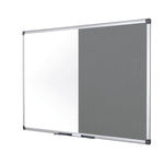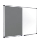 The Bi-Office Maya Non-Magnetic Combination Board is a 2-in-1 product and a sober, adaptable, and efficient option for your home or office. The grey felt surface is smooth, pinnable and hook-and-loop-friendly. Make sure everyone is on the same page and acknowledges important information or any tasks that need to be considered. Bring a bit of life to the office with colour, and increase the usability and perception of the board. The non-magnetic drywipe surface is suited for moderate use, easy to write on and to clean. You can write text, draw, erase, and do it all over again. Let the creativity flow within the workplace. The set includes a tray to keep accessories at hand and an installation kit for an easy wall mount. Horizontal or vertical wall unit with screws that go through the holes in the plastic corners. This is the simplest, sturdiest, and most robust mounting system around. As a wall-mounted board, its a cost-effective solution that saves room space.