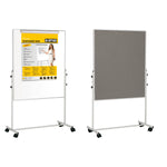 Portable and multi-purpose, the Bi-Office Mobile Duo Easel is the right choice for presentations. Dynamic companies can improve efficiency and manage space according to the needs of the moment. With 4 locking casters, its easy to move to any required location because of its lightweight yet durable structure. Take it to any workspace, office or meeting room, and brainstorm and present ideas. Plus, its height-adjustable, so it can be set to a more comfortable position for the user. Double-sided solution, with a felt surface on one side and a magnetic surface on the other. The grey felt surface is smooth and pin-friendly. Use push pins or Velcro to post notes or any message, as well as to improve presentations. Make sure everyone is on the same page and acknowledges important information or any tasks that need to be considered. The dry-wipe lacquered steel surface is suited for frequent use, writing, and erasing. You can write or draw on a flipchart pad or directly on the board, and use magnets to display items. Get the best results by mixing different methods, making communication more efficient. The adjustable clamp with hooks fits any standard flipchart pads. Includes a full-length tray to place dry-wipe markers within reach.
