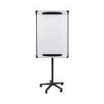 This Bi-Office Flipchart Easel features a high quality, lacquered steel Magnetic surface, as well as an adjustable clamp for use with standard flipchart pads. Fully portable with a 5-star castor base, the easel also features two Magnetic extension arms for displaying up to three sheets of paper at once. The aluminium frame includes a convenient folding tray to keep papers secure during transport. Great for training, meetings and presentations, the board surface measures W700 x H1000mm.