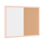 The Bi-Office Pastel Magnetic Combination Board is a 2-in-1 product and a fun, adaptable, and efficient option for your home or office. The cork surface is self-healing and resistant, no marks are visible when the push pins are removed. Pin boards are a great way to keep important information organised and to post reminders. The Drywipe lacquered steel surface is suited for frequent use. You can write text, draw, or make diagrams, erase them and do it all over again. Plus, you can use magnets to display information. Usually associated with optimism, playfulness, and lightness, pastel colours send off positive and calming vibes, increasing concentration levels. This makes the MDF frames pastel salmon tone a great match for work or study spaces. Let creativity flow within the workplace. The set includes a tray to keep accessories at hand and an installation kit for an easy horizontal or vertical wall mount.