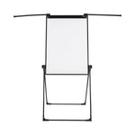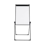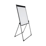 Bi-Office Premiere Flipchart Magnetic Easel with 2 extendable arms and black aluminium frame and structure. Portable and versatile, this easel is the right choice for presentations. Dynamic businesses can improve efficiency and manage space according to their needs. its easy to carry to any required location because of its lightweight and double-footed stable structure. Take it to any workspace, office, or meeting room, and brainstorm and present ideas. The black structure and frame bring a contemporary touch and matches nicely with many decor styles. Plus, its height-adjustable, so it can be set to a more comfortable position for the user. Fold it away when you are done if you want to save space. its also double-sided, rotating through 360 degrees and locking in place for a multi-purpose display. The dry-wipe lacquered steel surface is suited for frequent use, writing, and erasing. You can write or draw on a flipchart pad or directly on the board, and use magnets to display items. Pull out the extensible arms and post additional information; the expanded area of display will boost the meetings productivity. Get the best results by mixing different methods, making communication more efficient. The adjustable clamp fits any standard flipchart pads. Includes a full-length tray to place dry-wipe markers within reach.