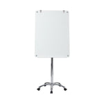 A superb writing surface, glass fits any modern interior, The Bi-Office Prime Glass Mobile Easel is a mobile and versatile solution for any presentation. its the right choice for dynamic companies to improve work efficiency and manage space according to their needs. Combined with chrome elements, its easy to see why this premium product is a truly unique communication tool. Glass is the finest dry erase surface available today. It never ghosts, cleans easily and is perfect for extensive use. The magnetic opaque surface allows you to use the surface for posting or writing. This Bi-Office flipchart easel features a magnetic tempered glass surface with 4mm thickness, for safer use. The product features a robust metal chrome structure with metal plate tray to store all your accessories and two metal clamps to fit any standard flipchart pad. This flipchart easel is also durable, stable, and easily moved between rooms, due to its mobile base with 5 locking castors, making it an ideal solution for office spaces and meeting rooms.