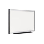 The Bi-Office Provision Magnetic Whiteboard is the perfect fit to enhance your work presentations. Efficient communication is the key to success. Explain, brainstorm ideas, and be creative. Decide, plan and analyse. All in one place. This makes it a very good add-on to training centres and workplaces. The dry wipe lacquered steel surface is suited for frequent use with a 10 years lifespan. You can write text, draw, or make diagrams, erase them and do it all over again. Plus, you can use magnets to display information. Elegant aluminium frame with plastic side trims that matches different decor styles. Simple and sturdy wall mount system. As a wall-mounted board, its a cost-effective solution that saves room space. The set includes an easy to assemble plastic tray for accessories.