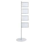 The Bi-Office Snap Display Post Mounting is a versatile and easy-to-use product developed for quickly displaying directions and short messages. It features a durable aluminium construction and snap-on mounting, to allow you to quickly and efficiently change the contents. With its simple installation, the Snap Display Post Mounting is an ideal solution for displaying directions, warnings, or messages in any setting. Clear plastic cover protects contents from damage. This information stand includes 4x A4 snap displays and is 1800mm in heigh.