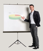 Bi-Office Tripod Projection Screen with matte white Projection surface rugged steel case chrome legs and carry handle. Easy to set up ideal for computer video slide and overhead projectors. Manufactured from flame retardant material. Size: 1250x1250mm.