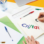 Bic Cristal Medium Black. Lightweight clear hexagonal barrel for comfortable writing. Tungsten carbide ball ensures consistent blob free writing. Medium. Line width 0.4mm. Black Ink. Pack of 50 black pens.