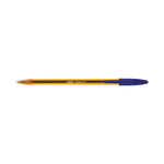 Bic Cristal Fine ballpen with orange barrel writes on any type of paper for up to 2km. Roll proof hexagonal barrel provides comfortable writing. With ventilated cap for safety and brass point with tungsten carbide ball. Blue.